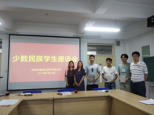 为加强与少数民族学生之间的沟通与交流,进一步了解少数民族学生的思想、学习、生活情况,以及对学院各项工作的意见和建议,机械与能源工程学院党总支于2019年6月28日在TCN509召开了少数民族学生座谈会。党总支书记何永艳、党总支副书记倪娜和学院副院长陈永平出席此次座谈会,学院少数民族学生及全体党员教师到场参加。会议由王晨怡老师主持。
