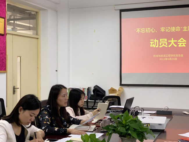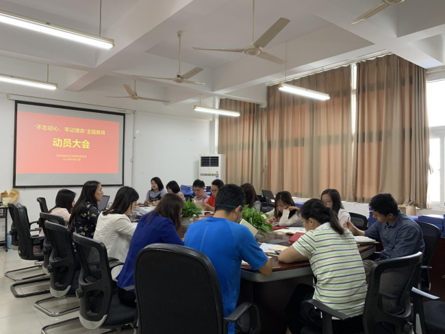 为深入学习贯彻习近平新时代中国特色社会主义思想,落实党中央、上海市委和学校党委关于第二批“不忘初心、牢记使命”主题教育的工作部署,我院党总支于2019年9月25日在TCN514召开了“不忘初心、牢记使命”主题教育动员大会。党总支书记何永艳出席并发表动员讲话,党总支副书记倪娜、副院长陈永平及全体党员到场参加。会议由党总支办公室主任王晨怡主持。