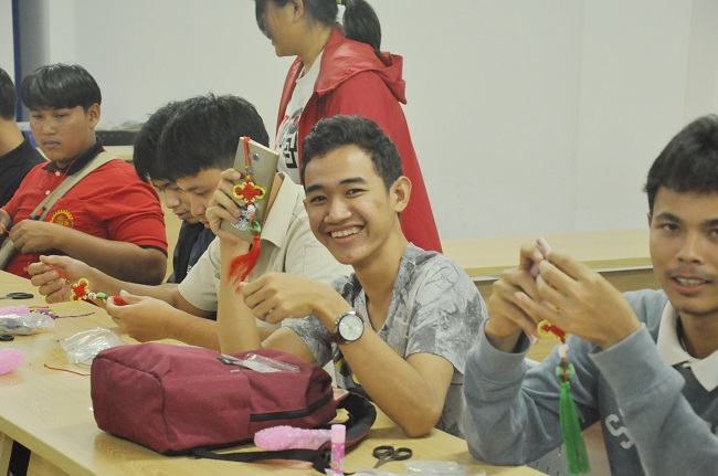 为加深交流生们对中国传统文化的了解,我院精心组织了趣味中国结编织活动。中国结是一种中国特有的手工编织工艺品,它身上所显示的情致与智慧正是中华古老文明中的一个侧面。泰国交流生们对象征着团圆、美满的中国结十分喜爱,纷纷将编织好的中国结珍藏起来。(作者:陈梅 供稿:机械与能源工程学院)