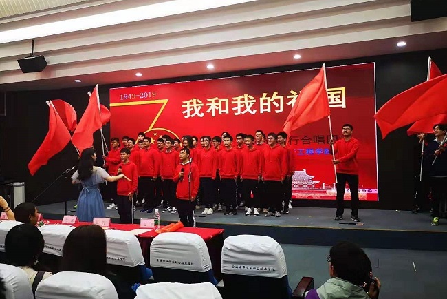 为高举习近平新时代中国特色社会主义思想伟大旗帜,为献礼新中国成立70周年,热情讴歌祖国 70年来的光辉历程和伟大成就,2019年10月21日下午,由我校校园文化艺术节组委会主办、机械与能源工程学院承办的“青春献未来 红心向祖国”红歌合唱大赛在C楼报告厅顺利举行。校团委胡捷、滕崧及各二级学院辅导员代表担任本次比赛的评委。机械与能源工程学院党总支副书记、副院长倪娜、辅导员代表参加了活动。