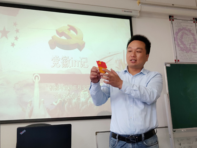 为贯彻落实“不忘初心、牢记使命”主题教育的要求,提高党员党性修养和整体素质,机械与能源工程学院党总支于2019年10月23日组织开讲党课——《党徽in记》,党总支组织委员乐旺锋主讲。