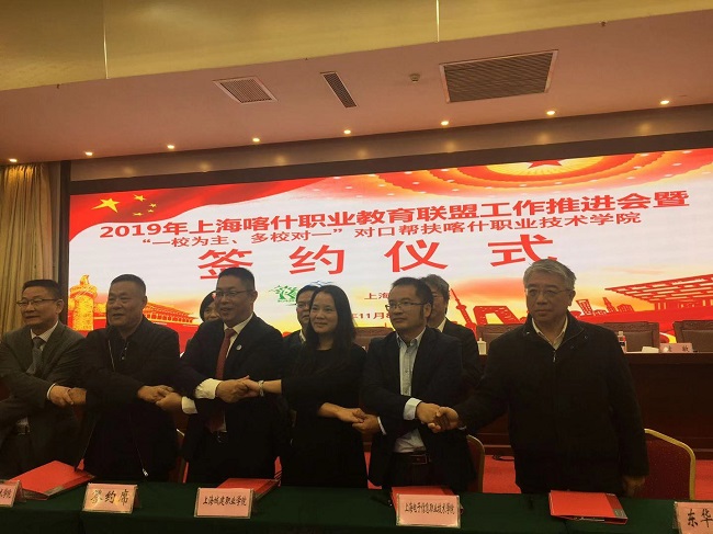2019年11月8日,沪喀职教联盟工作推进会暨“一校为主,多校对一”对口帮扶喀什职业技术学院签约仪式在新疆维吾尔自治区喀什地区举行。我校机械与能源工程学院党总支书记何永艳老师赴喀什参加了签约仪式。此次签约仪式将为落实上海“一校为主,多校对一”的专业帮扶机制以及上海职业教育对口支援南疆职业教育全覆盖奠定基础。签约仪式后的分组对接中,何书记与喀什职业技术学院应用工程系施文辉主任就选派教师赴喀职院指导教学、与喀职院互派交换生等工作进行了深入探讨。