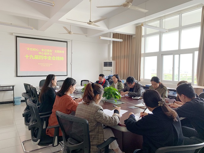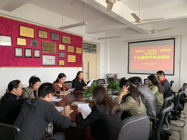 为深入学习宣传十九届四中全会精神,动员党员干部把思想和行动统一到全会精神上来,扎实开展工作,机械与能源工程学院中心组于2019年11月12日集中学习了十九届四中全会精神。会议由党总支书记何永艳主持,全体中心组成员到场参加。