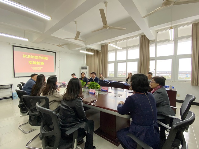 2019年11月29日,我院接受上海市依法治校示范校建设工作实地检查,本次检查通过实地查看、听取汇报、调研座谈、查阅资料等形式展开。在校长杨秀英和副校长窦争妍的带领下,检查组于下午来到我院检查二级学院开展依法治校工作的情况。我院党总支书记何永艳,副书记郭华、倪娜,副院长陈永平出席调研座谈会,学院相关行政工作负责人到场参加。