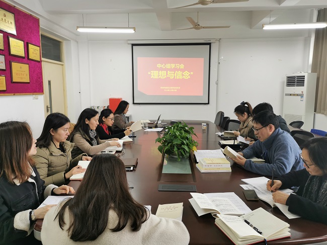 郭老师领读了《摘编》中关于“理想与信念”的部分,并带头发表了学习体会。郭老师强调,信仰、信念、信心,任何时候都至关重要,小到一个人、一个集体,大到一个政党、一个国家,只要有信仰、信念、信心,就会愈挫愈勇、愈战愈勇,否则就会不战自败、不打自垮。接着,中心组成员围绕主题展开研讨交流,大家充分发表观点,气氛热烈。傅卫沁老师表示,作为教育工作者,要始终坚决拥护党、追随党,忠诚于党和人民的教育事业,自觉坚定中国特色社会主义的信仰,静心教书潜心育人;乐旺锋老师认为,无论处在什么岗位,都应有理想信念,既要胸怀大志,更要立足现实,着眼本职岗位,扎扎实实从小事做起,从自己做起;王晨怡老师认为,坚定理想信念,自觉用习近平新时代中国特色社会主义思想指引教育实践发展,练就过硬政治本领,做政治上靠得住的“四有”好老师,是新时代高校教师的政治担当与职责所在。