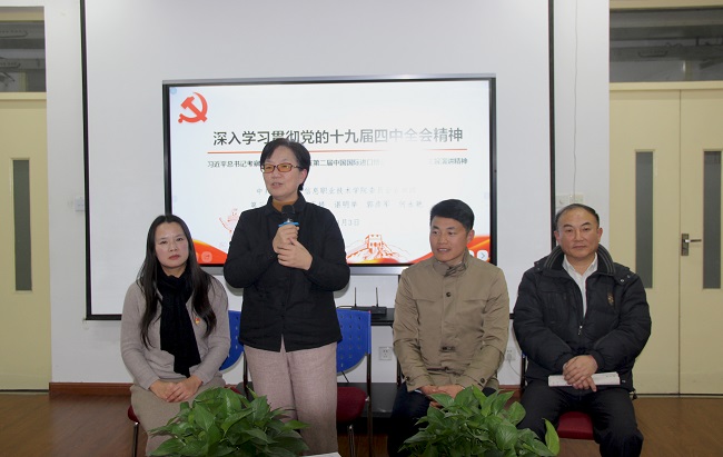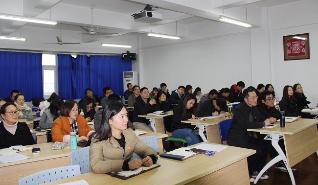 冬日暖阳,齐聚一堂,热情宣讲,精彩飞扬。新年伊始,学校党委组织成立的宣讲团就马不停蹄开启宣讲模式。2020年1月3日,校党委副书记、纪委书记毛玉婷率领的第三组宣讲团来到机械与能源工程学院党员活动室N509,为全院教职员工带来了一次耳目一新的学习体验。第三组宣讲团由毛书记、宣传部部长谌明举、机械与能源工程学院党总支书记、副院长(主持工作)何永艳、马克思主义学院郭彦军老师组成,宣讲会由机械与能源工程学院党总支副书记郭华主持。