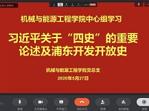 读史以明志,学史以静心。历史是一面镜子,它能真实映照共产党人的初心和使命。在国际形势风云变幻、国内发展百舸争流的新时代,从党史、新中国史、改革开放史、社会主义发展史中汲取养分是应对百年未有之大变局的关键。为贯彻落实习近平总书记重要讲话精神,培养党员干部历史视野和历史思维,增强历史担当,根据市委、市教卫工作党委和学校党委的工作要求,机械与能源工程学院党总支于2020年5月27日组织中心组成员集中学习了学校党委下发的《上海电子信息职业技术学院关于开展党史、新中国史、改革开放史、社会主义发展史学习教育的实施方案》、习近平关于“四史”的重要论述以及浦东开发开放史。学习会采用视频会议的方式开展。