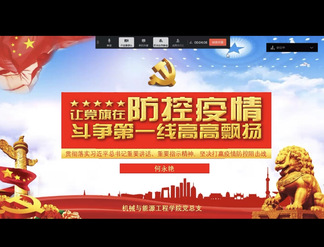 是否记得医院门口的云拥抱?是否记得援鄂医疗队姑娘们的光头新造型?是否记得病床上那次最美的夕阳?一个个画面定格的瞬间,是初心使命与病毒的碰撞,是党和人民紧紧相偎的情谊。疫情发展至今,我国的防控成效向世界彰显了“中国之治”的巨大优势和民族精神的强大力量,但疫情防控仍然存在危机与挑战。为学习贯彻习近平总书记关于“让党旗在疫情防控斗争第一线高高飘扬”重要批示精神,强化党员在疫情防控中的责任担当,机械与能源工程学院党总支书记何永艳搭建起“空中课堂”,用微党课为党发声。