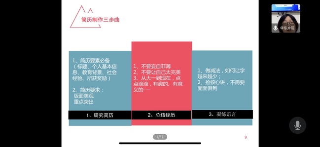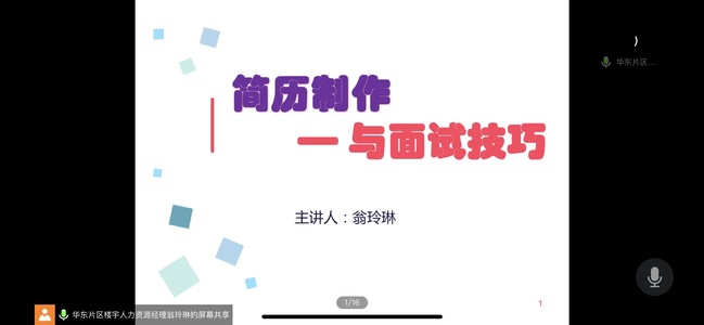 近日,我院2021届订单培养工作已经启动,为进一步指导2021届毕业生简历制作和面试技巧,提高学生疫情期间线上求职能力。2020年6月24日,机械与能源工程学院特邀请深圳市长城楼宇有限公司上海分公司人力资源经理翁玲琳为学院2021届毕业生做线上专题讲座指导。讲座从企业人事角度,介绍了2020年就业形势受到疫情影响的情况,从数据上直观地向同学们介绍了就业形势的严峻性;随后,从制作简历的三部曲仔细向同学介绍了简历制作的技巧和企业人事希望看到的是什么样子的简历;最后,面试普遍会问到的问题和考察的重点以及面试过程中应注意的事项。