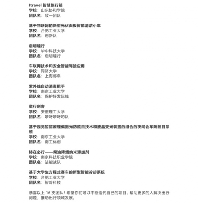 “2020福特优行创新挑战赛”为青年学生提供资源与机会,旨在推动青年用创新手段解决出行挑战,激发学生创新行动,训练学生创新思维,选拔培育优秀创新项目,共同创造美好的未来。后续“移动通用底盘”项目团队将全力投入线上路演和答辩的复赛准备,以冀在团队成员再接再厉、全力冲刺下,在全国复赛中比拼出更优异的成绩。(作者:倪娜)