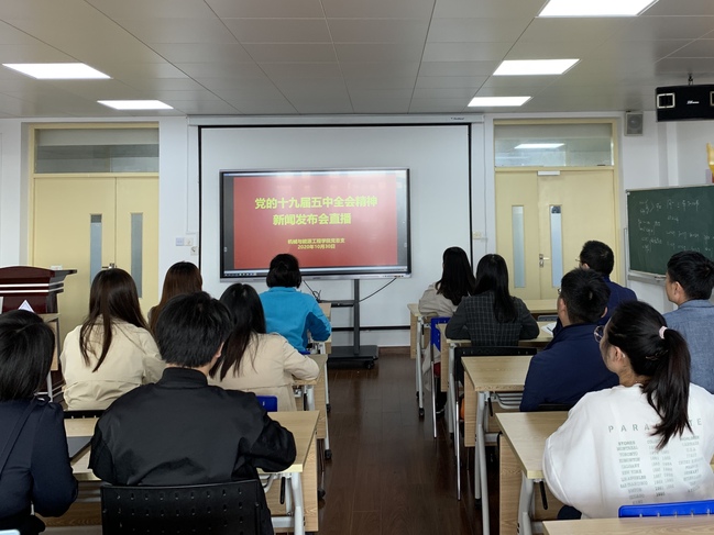 为学习宣传贯彻党的十九届五中全会精神,动员和激励党员为新征程奋斗,机械与能源工程学院党总支组织党员于2020年10月30日在N509集中收看了中共中央新闻发布会关于十九届五中全会精神介绍的直播。