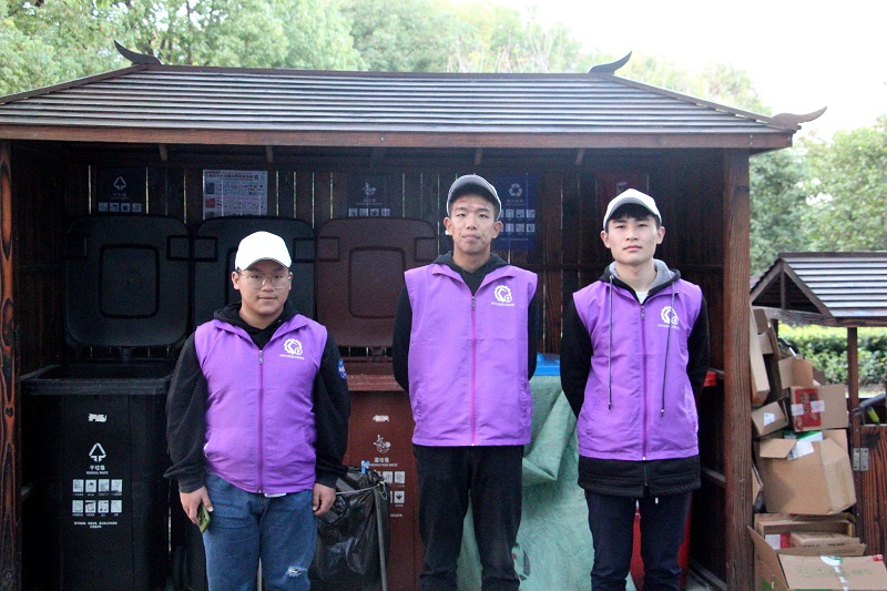 自2019年9月以来,我院已有三百余人次学生参与到“勤分类·悦劳动”校园环境护卫队中。近日,我院校园环境护卫队已开启本学期垃圾分类行动,他们井然有序地分布在1、2号宿舍楼门前,身着紫色马甲,在宿舍楼门口引导同学们处理不同性质的垃圾;在宿舍楼门口的垃圾桶前协助宿管阿姨对不同性质的垃圾进行区别挑拣;同时给不熟悉垃圾分类的同学科普垃圾分类知识以及分类技巧。