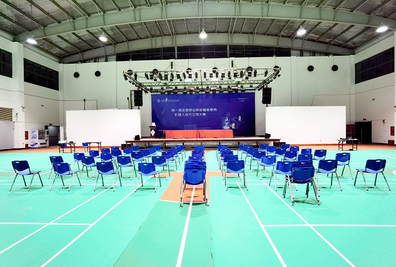 第一届全国职业院校智能服务机器人技术应用大赛赛前准备工作已于11月12日完成。我院实训室老师带领学生志愿者们作为赛前筹备人员开展会场布置工作。