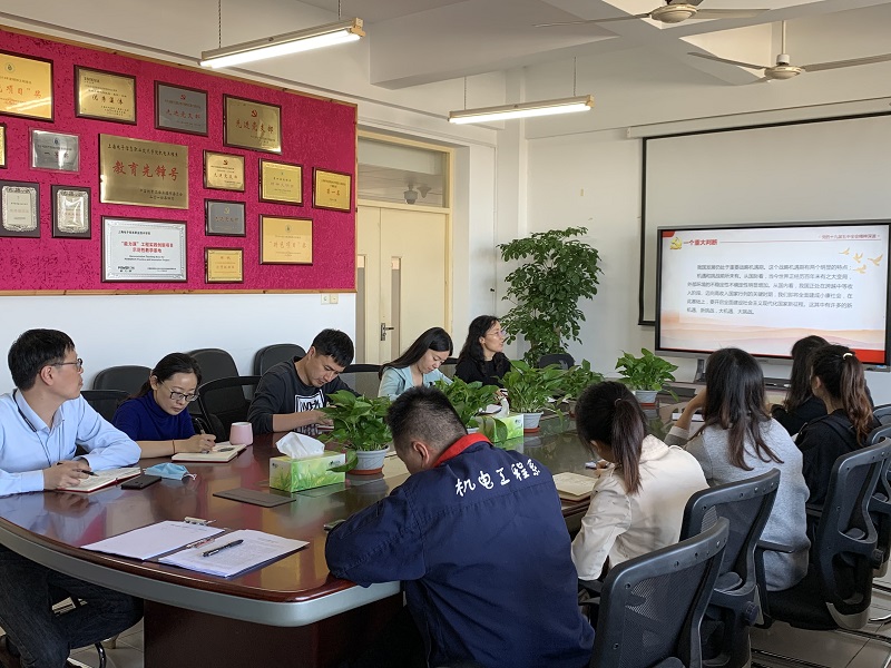 会上,郭华老师指出学习贯彻十九届五中全会精神是当年及今后一个时期的重要政治任务,要深刻认识全会召开的重要意义。接着,郭老师为大家解读了十九届五中全会精神,重点讲述了《中共中央关于制定国民经济和社会发展第十四个五年规划和二〇三五远景目标的建议》起草的过程、亮点、新发展格局的构建以及远景目标的实现方式。中心组成员就学习内容展开交流研讨。何永艳老师强调,党员干部要正视新发展阶段,树立新发展理念,把握新发展格局,以更为开放的姿态和国际化视野担负起为党育人、为国育才的时代重任,推动教育改革和现代化进程。王晓栋老师表示要要树立创新意识,在学习中进步,在进步中学习,以高标准、高效率、高水平的工作业绩回报学校和社会,力争做好工业机器人技术一流专业建设。卢高禾老师谈到,新的形势带来新的变化,也给就业工作带来了很多挑战,“稳就业”是经济工作的重中之重,将竭尽所能开发新单位、新企业,在新形势下做好学生就业实习工作。