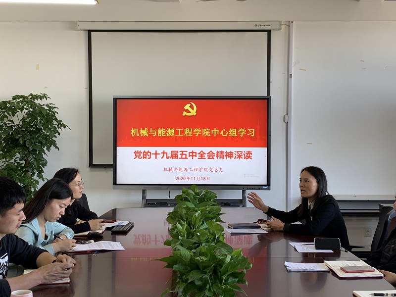 为贯彻落实十九届五中全会精神,营造浓厚的学习的氛围,引导党员干部准确把握时代发展方向和格局变化,激发拼搏奋进的动力,我院中心组于2020年11月18日集中学习了十九届五中全会精神。学习会由党总支副书记郭华主讲,党总支书记何永艳、副书记倪娜、副院长陈永平及中心组成员到场参加。