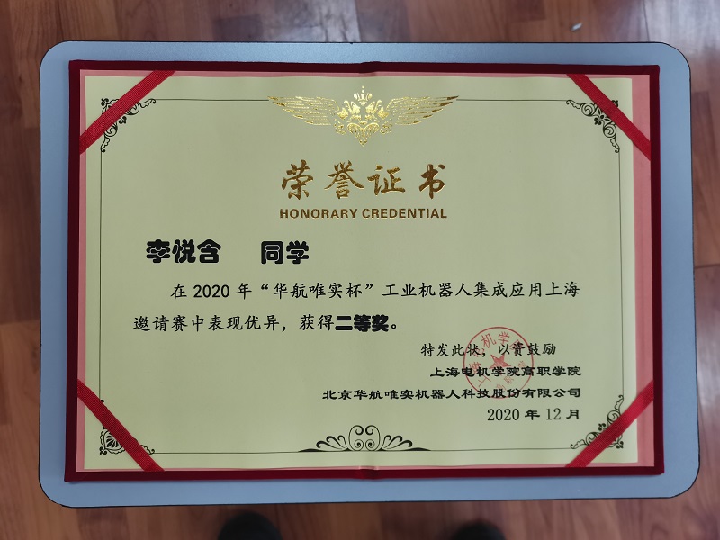 12月6日,北京华航唯实机器人科技股份有限公司和上海电机学院联合举办的2020年“华航唯实杯”工业机器人集成应用上海地区邀请赛在上海举行。为了进一步提升学生技术技能培养,机械与能源工程学院选派李悦含和朱成成两位同学组队参赛。