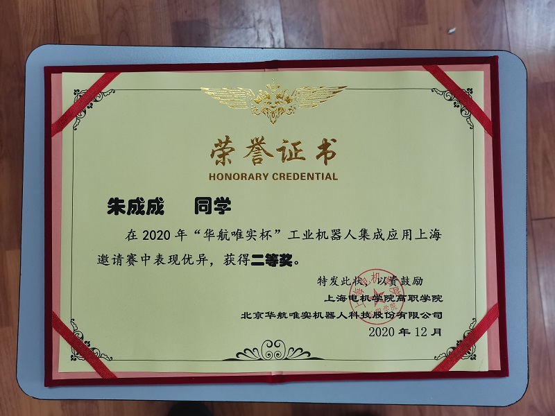 12月6日,北京华航唯实机器人科技股份有限公司和上海电机学院联合举办的2020年“华航唯实杯”工业机器人集成应用上海地区邀请赛在上海举行。为了进一步提升学生技术技能培养,机械与能源工程学院选派李悦含和朱成成两位同学组队参赛。