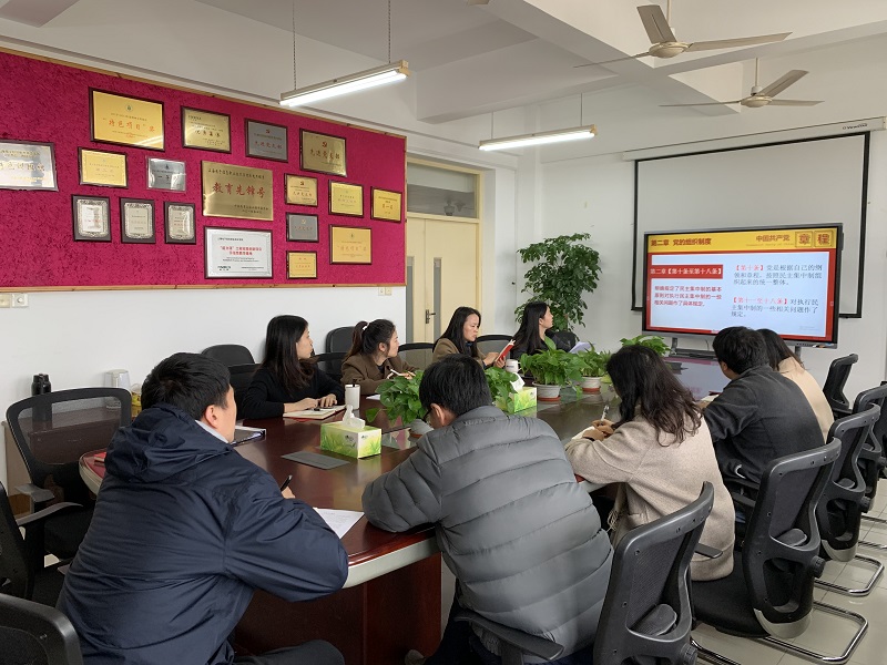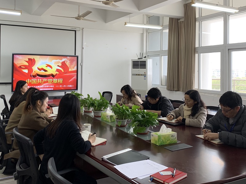 为深入学习贯彻习近平新时代中国特色社会主义思想和党的十九大精神,推动“四史”学习教育向纵深发展,引导党员干部守初心担使命,强化规矩意识和宗旨意识,我院中心组于2020年12月8日在N514集中学习了《中国共产党章程》。党总支书记何永艳、副书记郭华、倪娜、副院长陈永平参与学习,中心组成员到场参加。学习会由倪娜主讲。