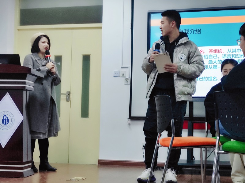 随后,通过幸运数字排序的方法,将同学们分成了4个小组,在小组内选组长、定组名、签组约,确定加油动作。通过滚雪球自我介绍活动,让同学们加深对彼此之间的印象。而“同舟共济”让成员体验到了团队合作的重要性,以及助人与自助的快乐。