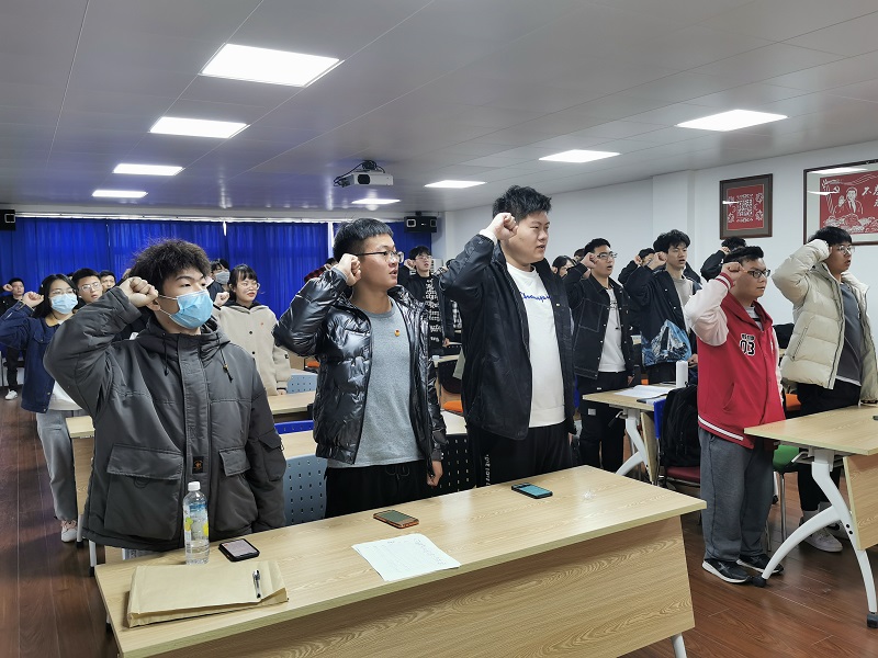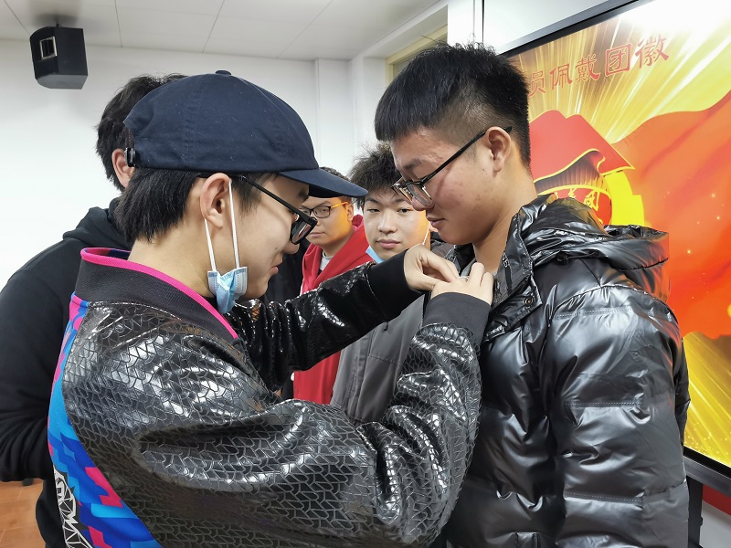 团总支副书记徐超越宣读名单;新团员宣誓;本届团学干部为新团员佩戴团徽;