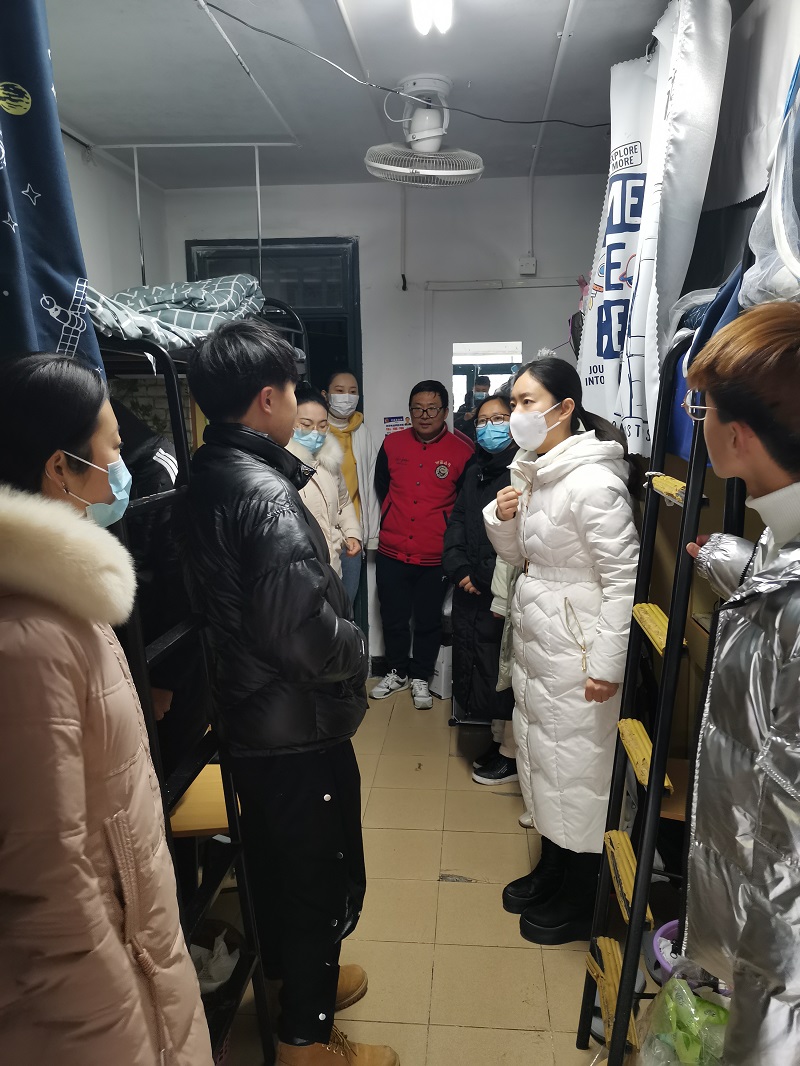 同时,为扎实做好寒假学生安全离校工作,党总支副书记、副院长倪娜带领全体辅导员到生活园区巡访宿舍,关心学生离校情况,叮嘱学生离校前关闭电源、关好门窗,做好途中防护,提醒同学们防疫不放松,平安过新年。(作者:侯涛)