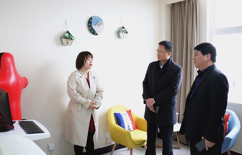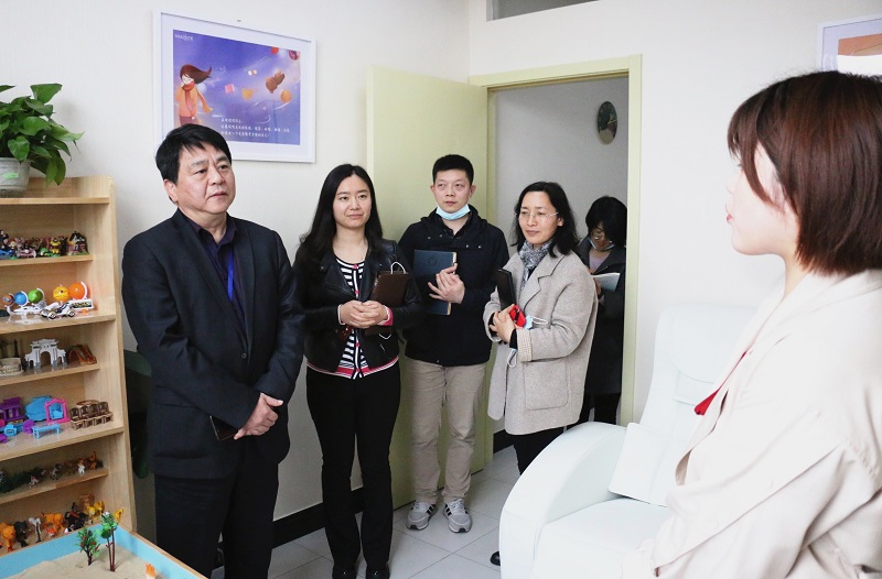 4月2日下午,学校党委书记田钦,党委副书记、副校长张涛,在学工部副部长栾文飞、心理健康教育与咨询中心主任易培等人员的陪同下,莅临我院二级心理工作站“械忧坊”指导工作。