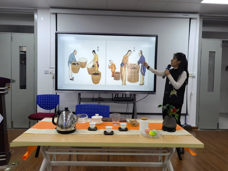 课上,罗彦老师带领大家了解我国传统的茶文化由来和传承、介绍了茶叶品类、制茶工艺、茶具使用等传统茶艺知识。随后在美妙的音乐声中,老师从茶道礼仪、手法娓娓道来,老师一边讲解一边带着大家一起冲泡红茶,举手投足间尽显中国古典美。在座的老师都切实体会到茶文化的优雅和静心的韵味。冲泡完成后,大家互相奉茶,搭配着精致的茶点,品着幽香的茶,谈笑风生中结束了这场视觉味觉盛宴。