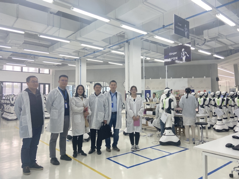 达闼机器人教育副总裁齐建伟等人首先带领学院领导和老师参观了达闼机器人的典型产品和生产环境。随后介绍了智能机器人在服务、清洁、安保等方面的应用,表达了产教融合、校企合作的意愿。