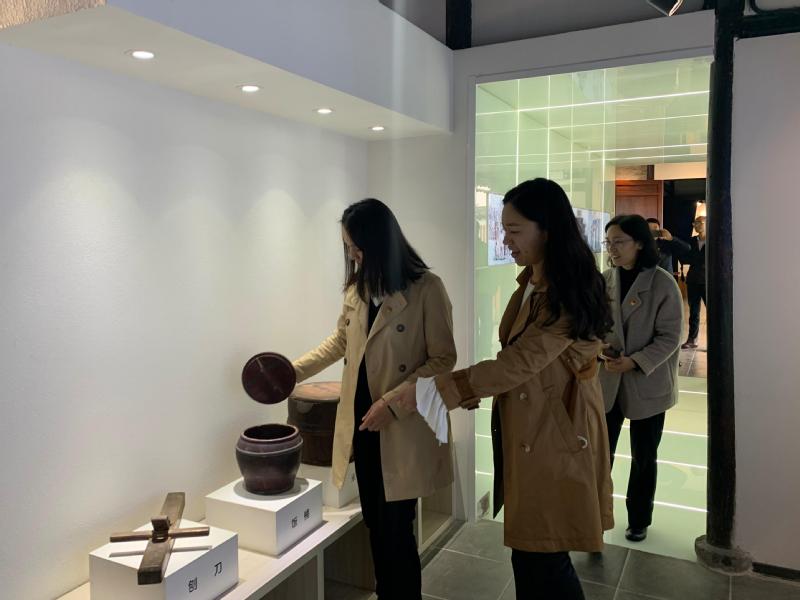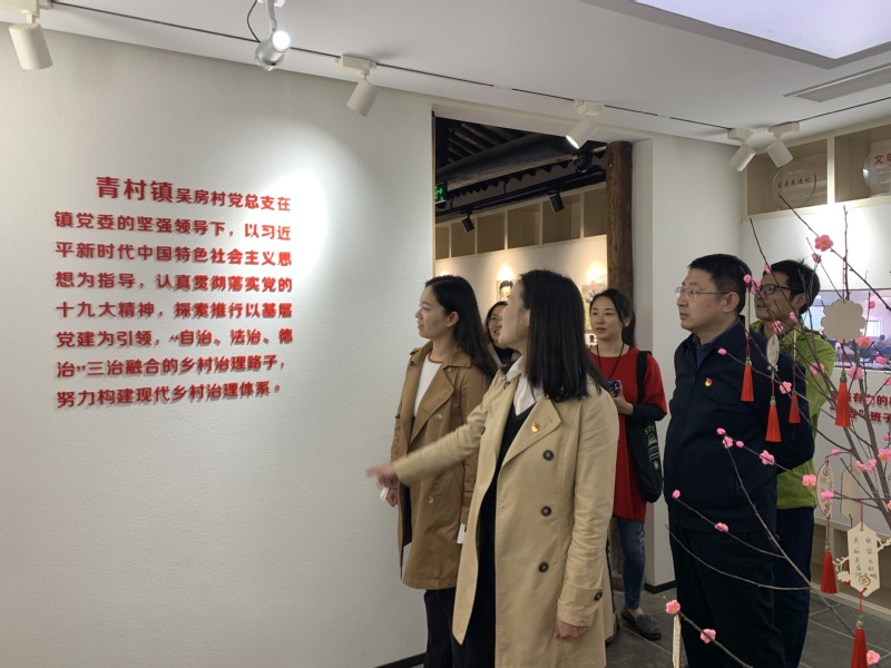 吴房村位于奉贤区青村镇西南部,是上海第一批乡村振兴示范村之一,也是第六届全国文明村镇。组织员王晨怡介绍了吴房村的振兴历程,阐述了国家政策和时代进步给乡村发展带来的新出路。随后,大家参观了文化展示区、共享农庄、十里桃林、农创市集等场所,别致的建筑、秀丽的风景让大家不由自主地驻足欣赏,并拿起手机记录下来。大家从村居院落中体会到美丽乡村建设给村民带来的幸福感和获得感,从“黄桃+IP”的特色产业中看到村子的前瞻性和创新性。