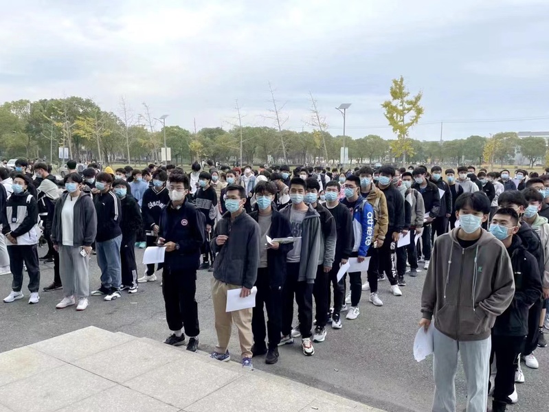 2021年11月16日,选举日如期而至。晨起雾散,尚有凉意,实训大楼门前广场上已集结了我院上千位学生选民,区域分明、列队整齐。N509、N102、N105、S105四个投票站工作人员和学生志愿者也已准备就绪、整装待发。
