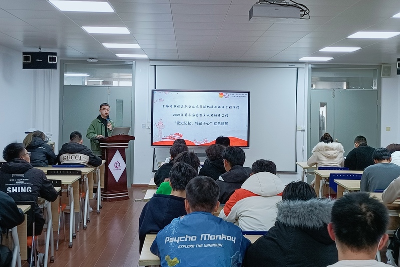 “党史记忆,铭记于心”红色拓展活动分为四个部分。第一部分,红色歌曲猜猜猜,需要依据听到音乐猜出红色歌曲名称,青马班学员对经典的红色歌曲耳熟能详,均积极抢答,现场氛围热烈,伴随着歌曲《少年》的合唱声,这一环节圆满结束。第二部分,古迹名胜识记竞赛,通过图片形式向青马班学员展现中国名胜古迹,其中历史的沉淀感不言而喻,引发学员们默默怀念革命先烈,不断追忆革命历程。第三部分,红色文物分享大会,21机器人2谢丰泽向大家详细介绍了铁剑、喇叭、鸡毛信等红色文物,他通过视频与讲述相结合的形式,极大提升了红色文物展示的呈现效果,带领青马班学员追寻历史印记,传承红色基因。第四部分,革命人物实景演绎,18机电(贯通)2班精彩演绎了“董存瑞舍身炸碉堡”的场景,以有声有色的形传播革命精神。