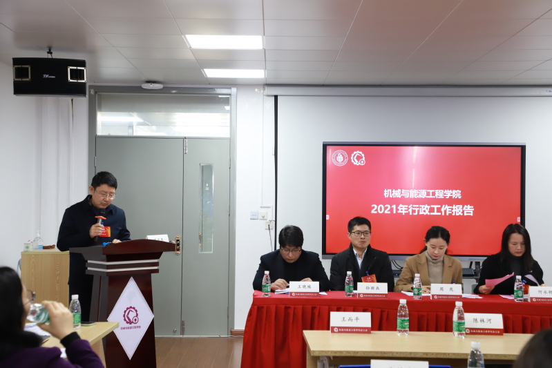大会听取了《机械与能源工程学院2021年行政工作报告》。并审议通过了《机械与能源工程学院教职工代表大会实施办法》、《机械与能源工程学院年终绩效分配方案》、《机械与能源工程学院专业骨干教师聘用选拔办法》、机械与能源工程学院专业带头人聘用选拔办法》四份文件。