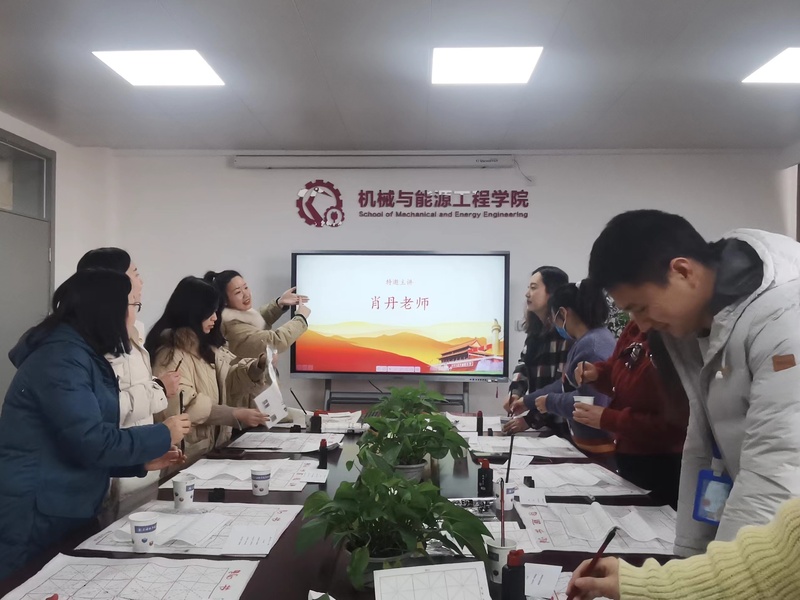 书法被誉为“无言的诗,无声的乐”,蕴藏着中华传统文化的精髓。为丰富支部组织生活,深化党史学习教育,以传统文化赓续红色精神,增强与民主党派之间的凝聚力、向心力,我院学生党支部于2021年12月30日在N514开展了“传承红色文化,书写初心使命”主题党日活动。活动特别邀请上海教工“抗击疫情,你我同心”书法作品获奖教师、民盟盟员肖丹老师进行书法教学指导,党总支副书记郭华、倪娜及支部党员到场参加。