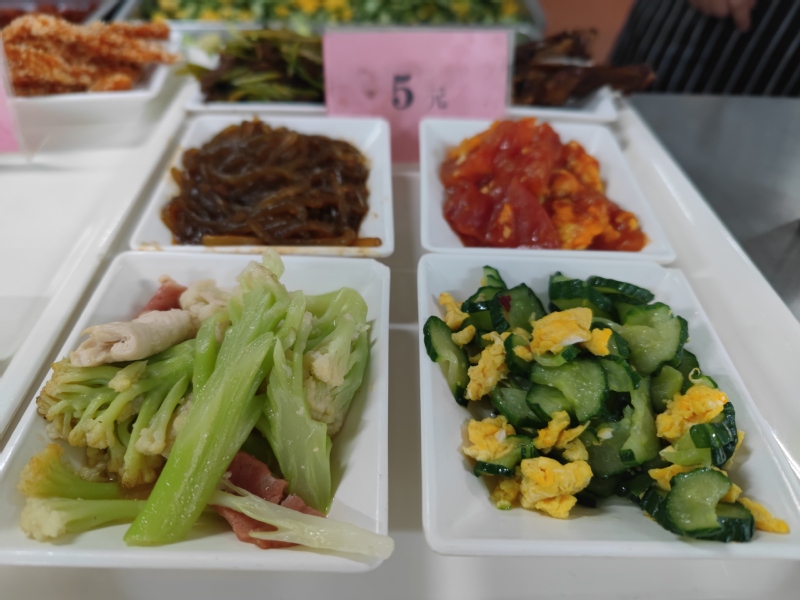 学校食堂每天为我们精心搭配烹饪营养餐食,面对美食,我们要养成健康卫生的饮食习惯,注意个人防护,保持好环境卫生,出入食堂时自觉规范佩戴口罩,有序排列,保持就餐距离。