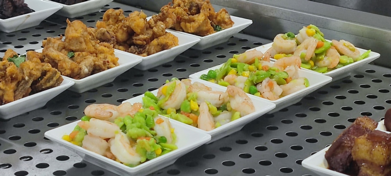 学校食堂每天为我们精心搭配烹饪营养餐食,面对美食,我们要养成健康卫生的饮食习惯,注意个人防护,保持好环境卫生,出入食堂时自觉规范佩戴口罩,有序排列,保持就餐距离。