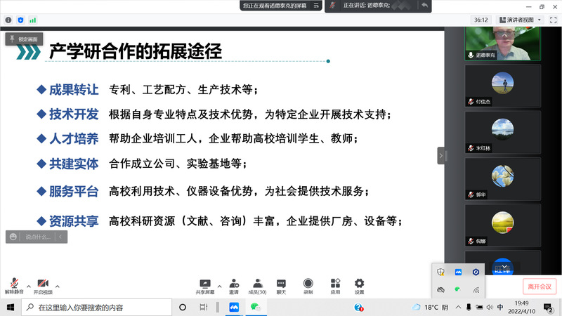 本次讲座侯教授以丰富有趣的讲解方式向学院教师分享了开展产学研项目真正的合作涵义,并对如何拓展和加深产学研合作、使合作具有可持续性和发展性进行分析指导。通过此次学习,我院教师对产学研合作有了更深层次的认识,对后续学院扎实开展产学研合作工作具有重要的借鉴意义。(供稿:付佳杰)