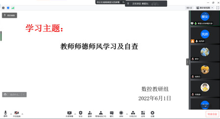 教研室主任组织教师们通过线上会议开展了学习和交流。机电教研室表示,总书记的谆谆教诲重新燃起了自己投身科教事业的那份热情,大家将站在培养担当民族复兴大任的时代新人的战略高度,认真审视教师的职责和自身的作为。数控教研室在认真研读了职业教育教师队伍能力提升的文件后,对职业规划有了新的思考,认为国家对职教教师培养十分重视,要充分利用这些优厚的培训资源,坚持走追梦奋进路、做优秀职教人。电气教研室对新的实习管理规定进行了了解,在此基础上将充分利用身边的资源,为学生拓宽就业渠道,共同努力,最大限度减小疫情对学生就业的冲击。机器人教研室提到,师德师风建设是教师队伍建设的第一要务,也是能否开展好课程思政的前提,要以德立身、以德施教,在课程思政项目申报和教学比赛中不断提升育人能力。