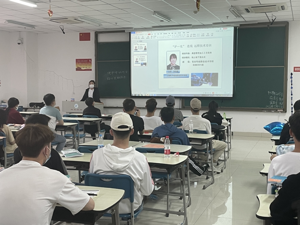 5月11日,克职院机械工程系周李娜老师和我院李秀霞老师为克职院机制2031班48位学生开展了一次灵活生动的线上线下混合式教学活动,主要以中级工车削零件为例,详细讲解典型零件数控车削加工工艺制订的内容、方法和步骤。