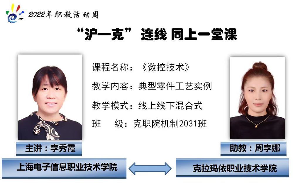 为推动中西部对口院校的协同发展,深化兄弟院校的教学交流,我院与克拉玛依职业技术学院联合开展了“沪克连线,同上一堂课”——2022年职教活动周活动。