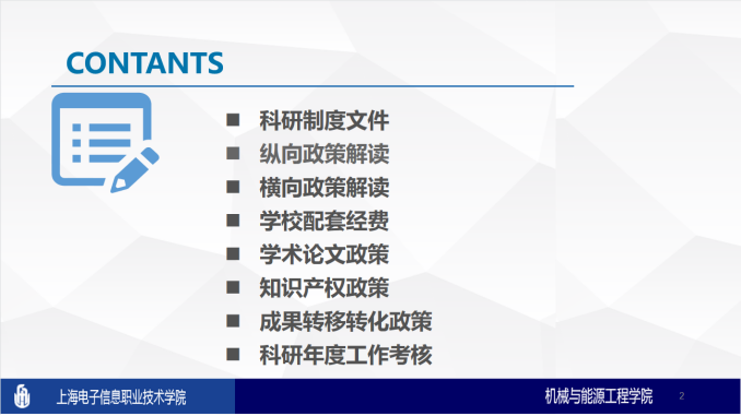 为进一步推进我校职业本科创建工作,使专任教师特别是新进教师更充分地掌握学校科研相关制度和政策,明确后续的科研工作方向。6月10日,我院召开了科研政策及相关流程解读会,科研秘书付佳杰主讲,学院领导及全体教师参加会议。会议由副院长陈永平主持。