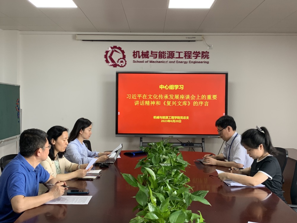 为深入学习贯彻习近平新时代中国特色社会主义思想,牢牢把握主题教育“学思想、强党性、重实践、建新功”的总要求,坚持读原著学原文悟原理,我院中心组于6月14日和6月20日分别学习了党的二十大报告、党章、习近平总书记在文化传承发展座谈会上的重要讲话精神和《复兴文库》的序言。