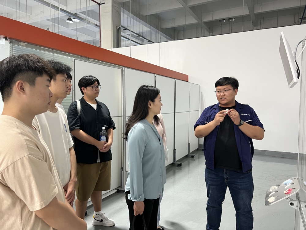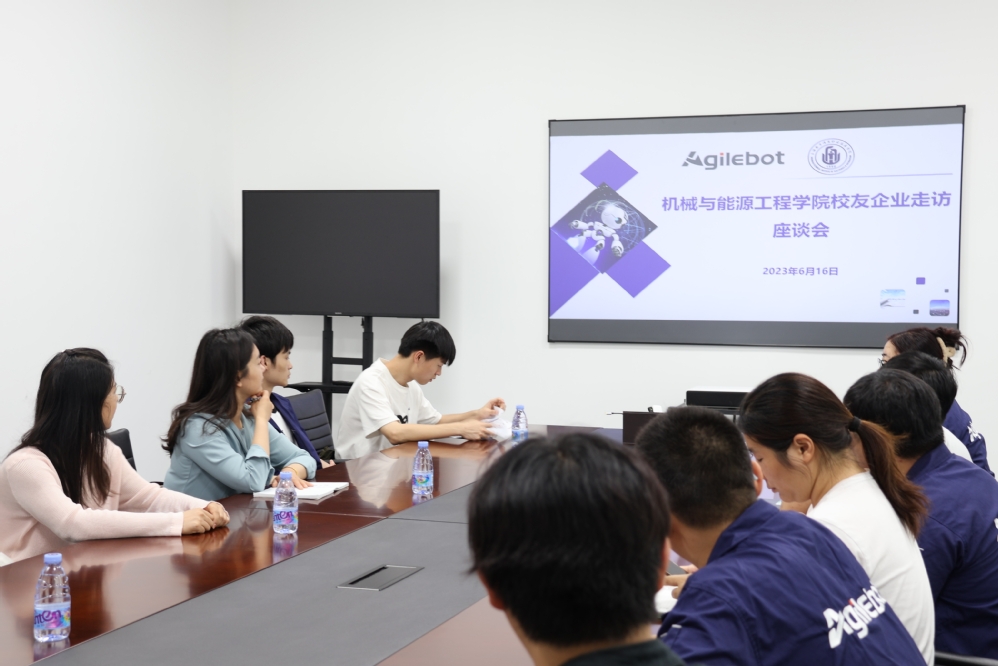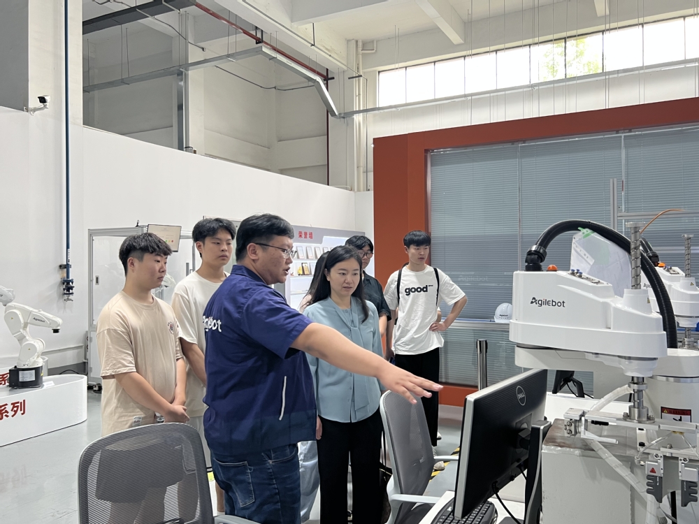 在张皓策经理的陪同下,学院一行参观了校友企业,全面了解企业的工作环境。张皓策介绍,企业除了已有的多关节机器人、SCARA机器人等机器人产品线外,还将继续研发协作机器人、ⅰ-R智能机器人、AMR移动机器人及细分行业应用软件包等。校友代表向同行的学生们展示了先进的驱控一体控制技术、智能机器人产品和相关服务等。