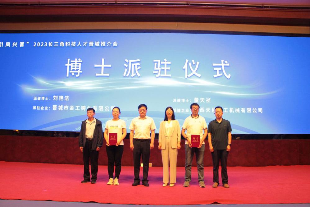 我院刘艳洁博士被聘为服务晋城市国家级专精特新“小巨人”企业派驻博士,并由晋城市副市长张鹏飞颁发证书。此次服务期为一年,服务企业为晋城市金工铸业有限公司。