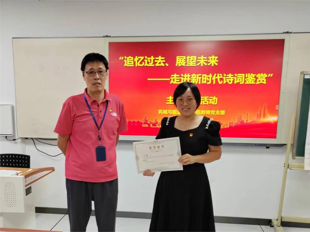 9月27日,机械与能源工程学院教师党支部开展“追忆过去 展望未来——走进新时代诗词鉴赏”主题党日观摩活动。各党组织书记和组织员受邀前来观摩,活动由教师党支部书记孙丽兵主持。
