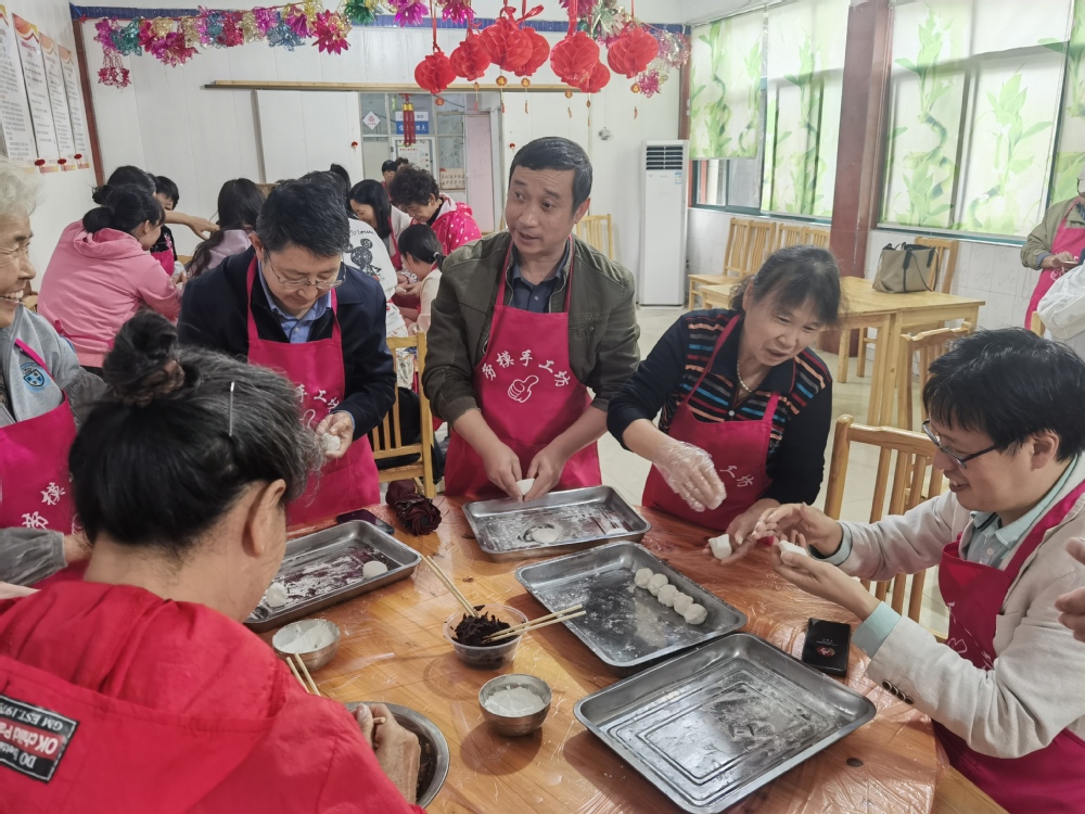 教职工通过制作塌饼,学习劳模精神,传承传统文化。党总支副书记郭华强调,要以劳动模范为榜样,大力弘扬劳模精神、劳动精神、工匠精神,爱岗敬业、勤奋工作,争做新时代奋斗者,在平凡岗位上创造不平凡业绩。(作者:周苑)