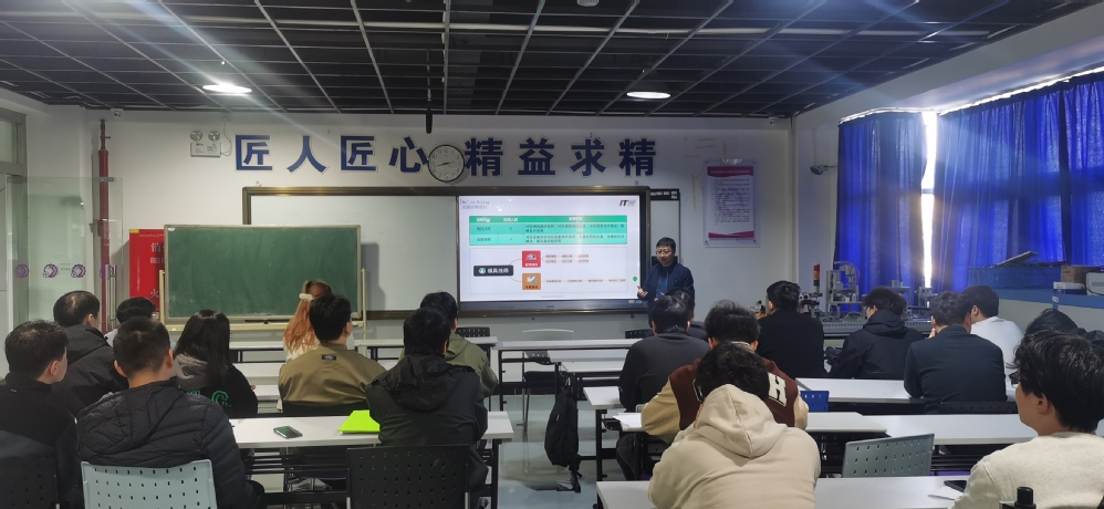 会后,李冏华一行参观了学院实训室。于九龙经理在自动化实训室为大二大三学生作实地宣讲,为后期企业扩大产能做好人才储备工作。(作者:乐旺锋)