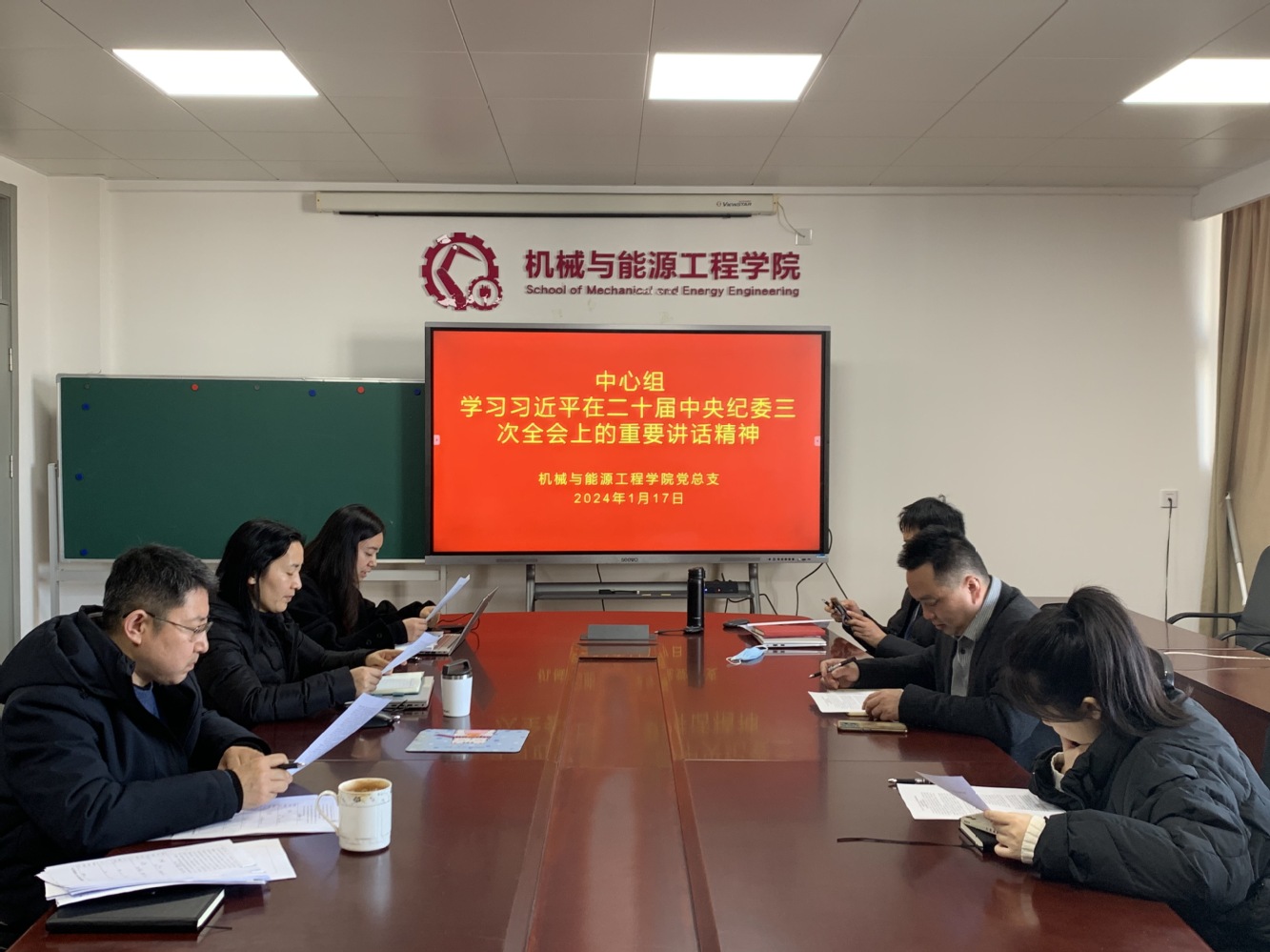 1月17日,机械学院召开中心组学习会,集中学习习近平在二十届中央纪委三次全会上的重要讲话精神。学习会旨在强化党员干部纪律意识,深入理解和践行习近平总书记关于党的自我革命的重要思想。