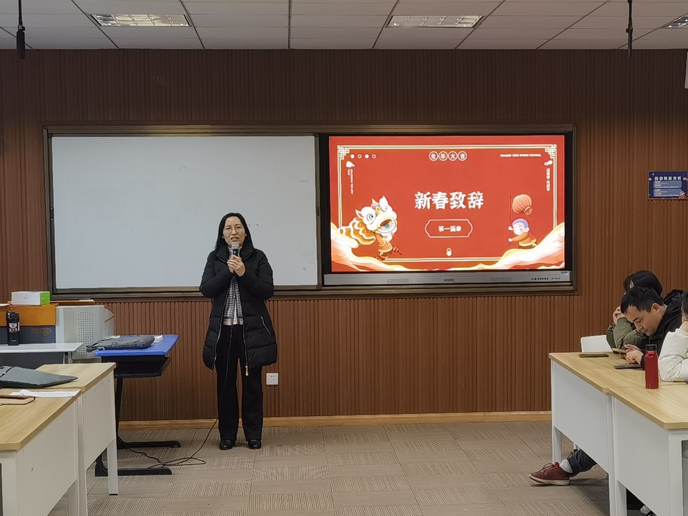 茶话会在喜庆的音乐声中开场,学院党总支副书记郭华向全体教职工送上新春祝福。郭华对过去一年学院教职工踔厉奋发,同心筑梦,在学院各项工作中结出累累硕果给予高度肯定,希望大家在新的一年携手共进,推动学院高质量发展。随后,党总支对党员在“学习强国”平台的优秀学习表现予以表彰并颁发奖状,鼓励大家继续努力,争取更好成绩。