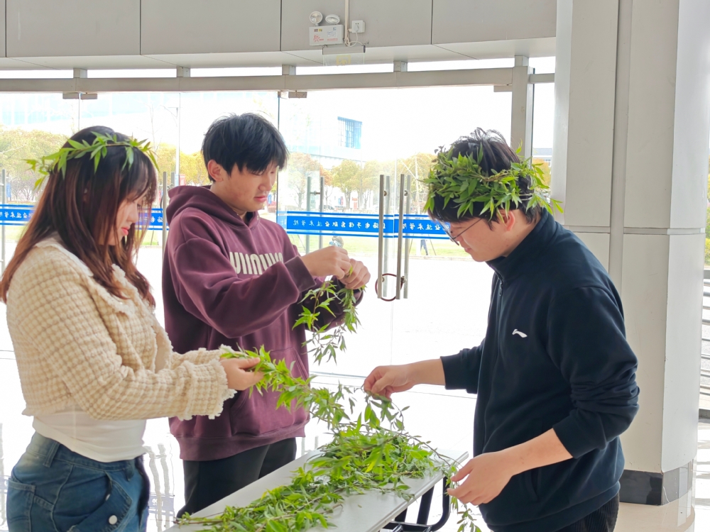 上午10时,志愿者将新鲜采摘的柳条有序摆放在实训楼大厅,等待同学们的到来。随后便开始正式编制柳帽,在大家巧手制作下,一个个绿油油的柳帽就成型了,大家互相帮忙佩戴,气氛十分热闹。活动结束后,同学们将剩余的柳枝带回插在寝室门楣上,用以驱除邪气、祈求吉祥和迎接春天。