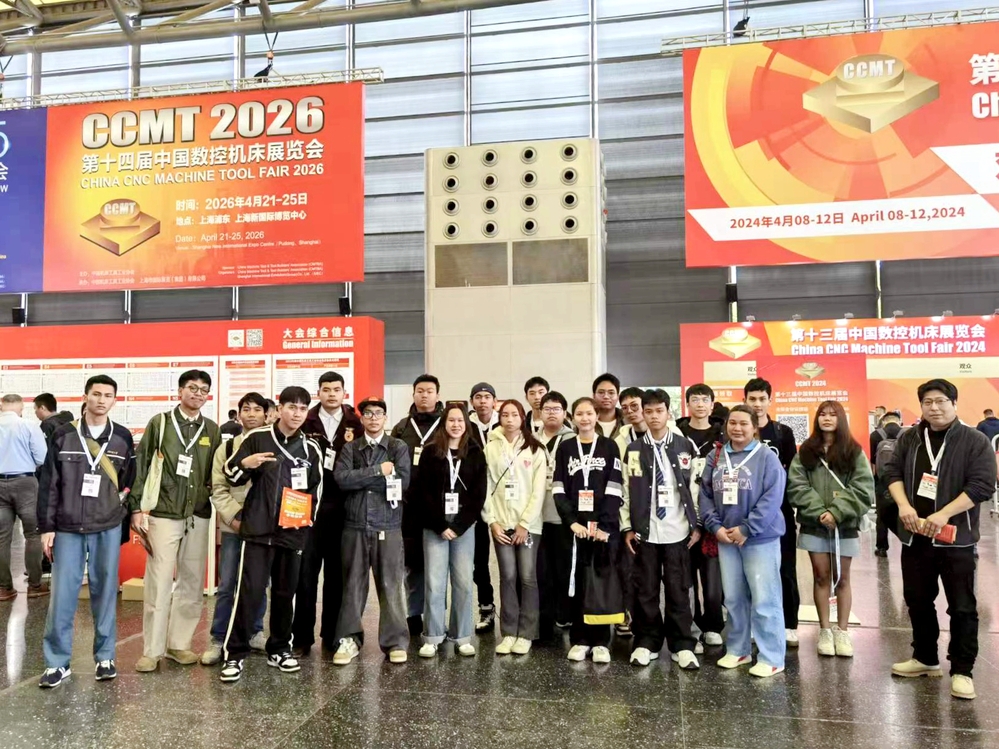 4月11日,中泰申谷学院工业机器人技术专业泰国学生集体前往上海新国际博览中心,参观第十三届中国数控机床展览会(CCMT2024)。